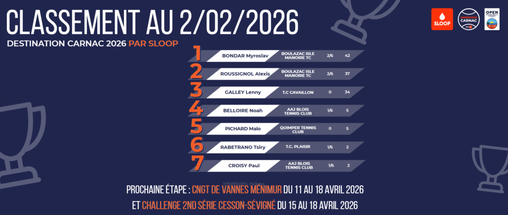 Cette opération vise à offrir une invitation pour les qualifications de l’Open International Tennis Carnac 2026 (24 au 30 mai) à un joueur de 25 ans et moins, ayant participé aux tournois organisés par quatre clubs bretons entre janvier et mai 2026.